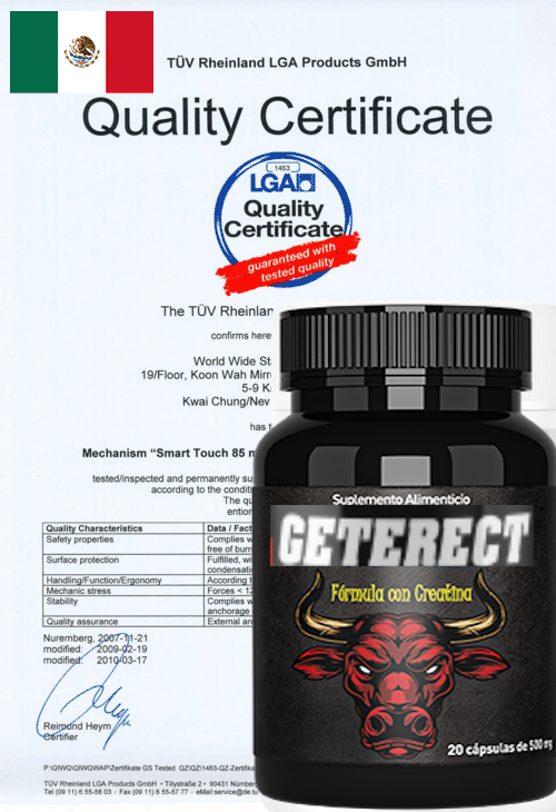 Durante los ensayos clínicos participaron 850 voluntarios con diversas formas de disfunción eréctil. Los resultados del uso de GetErect mostraron que el 95,5% de los participantes se deshicieron de sus problemas de erección y reanudaron una vida sexual activa. GetErect combate eficazmente la impotencia. Como médico, no recomiendo el uso de Viagra para problemas de erección. Los hombres suelen posponer la solución a los problemas de potencia, estimulando la erección con pastillas farmacéuticas, que pueden provocar enfermedades más graves. GetErect ha demostrado ser el mejor producto natural contra la impotencia. Las cápsulas, que contienen ingredientes únicos, actúan de manera mucho más eficaz que cualquier análogo farmacéutico, gotas o polvo.